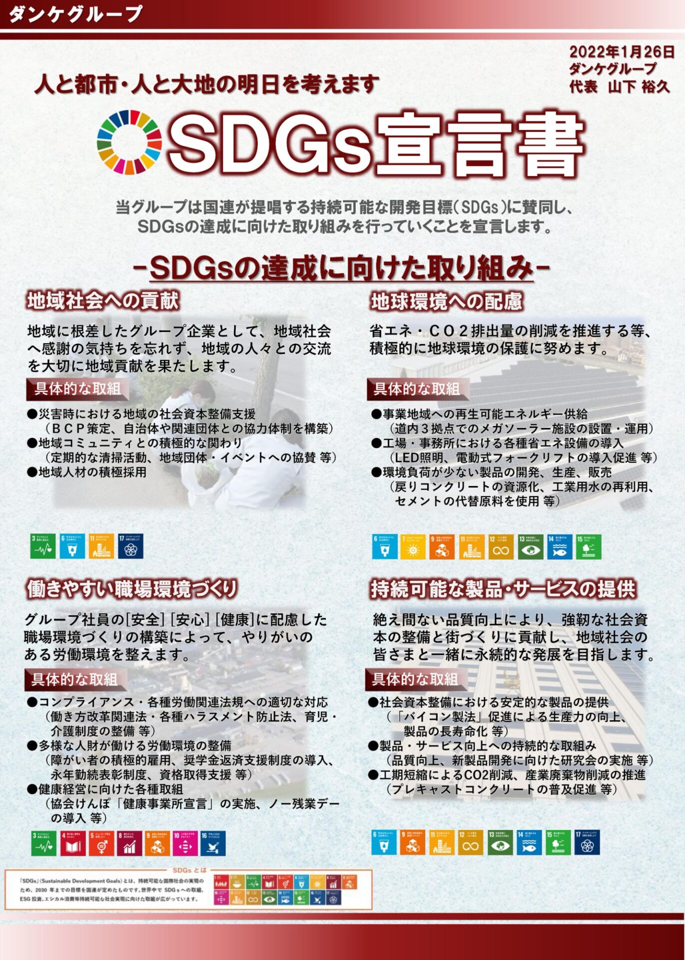2022年1月26日、ダンケグループは「SDGs宣言」を致しましたのでお知らせ致します。