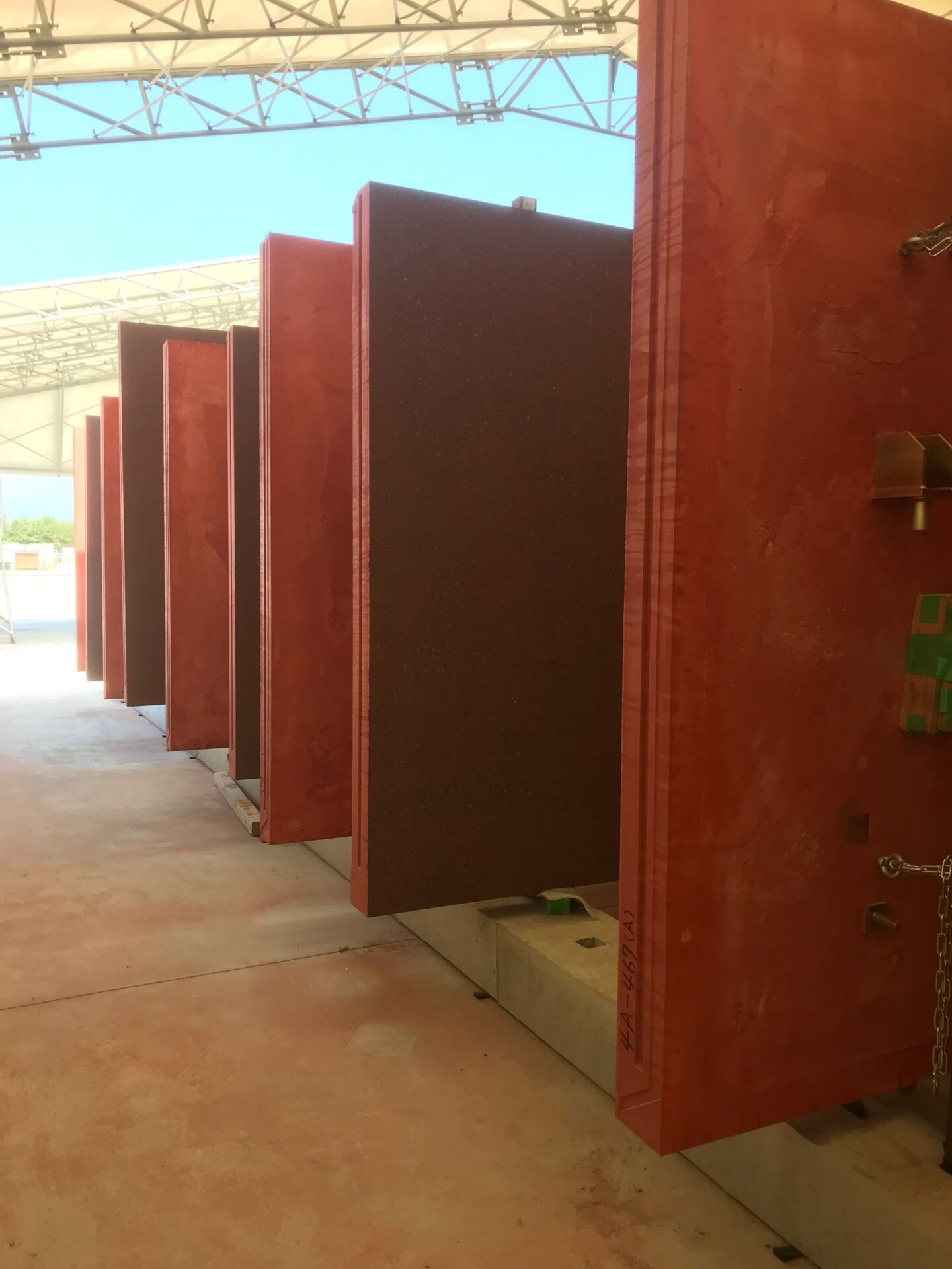 周囲の景観に溶け込む、コンクリートの質感を残した自然な色合いとするため、1階から3階には、コンクリートに顔料を混ぜたカラーコンクリートを使用しました。