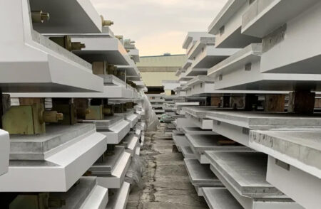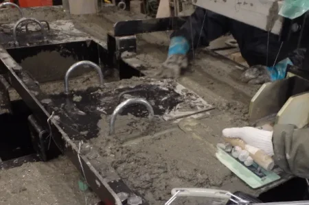 型枠が完成したら、工場に運び込み、セットします。この時に型枠の状態や寸法を詳細に確認し、図面通りの製品が出来るかどうかを判断します。